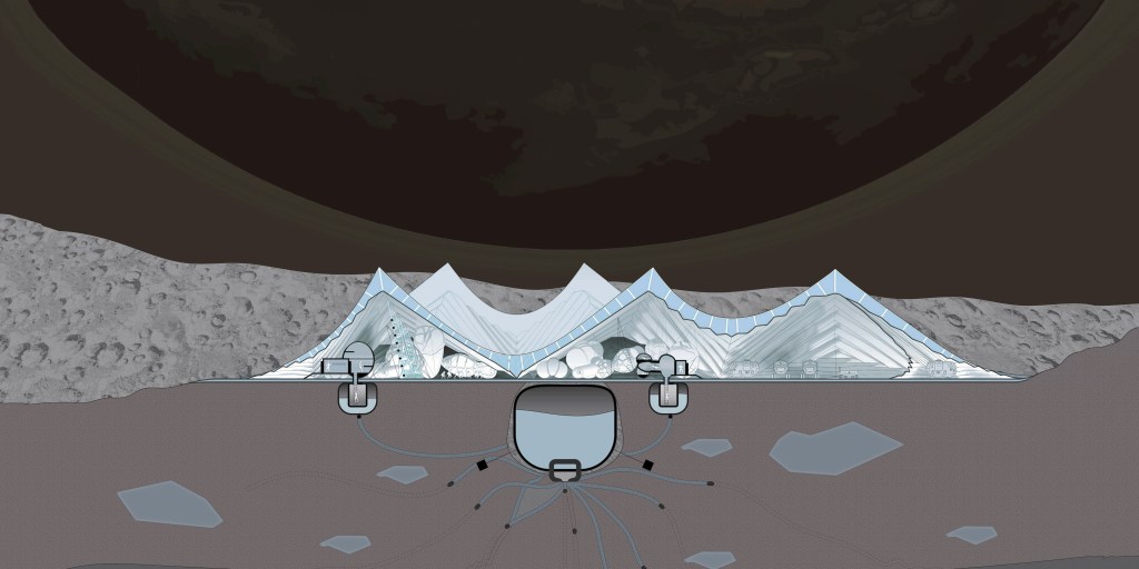 Modular structures of IASO allow for expansion in the future; it can host multiple mission crews simultaneously. The transit hub is formed by an aggregation of inflatable modules that host community activities.