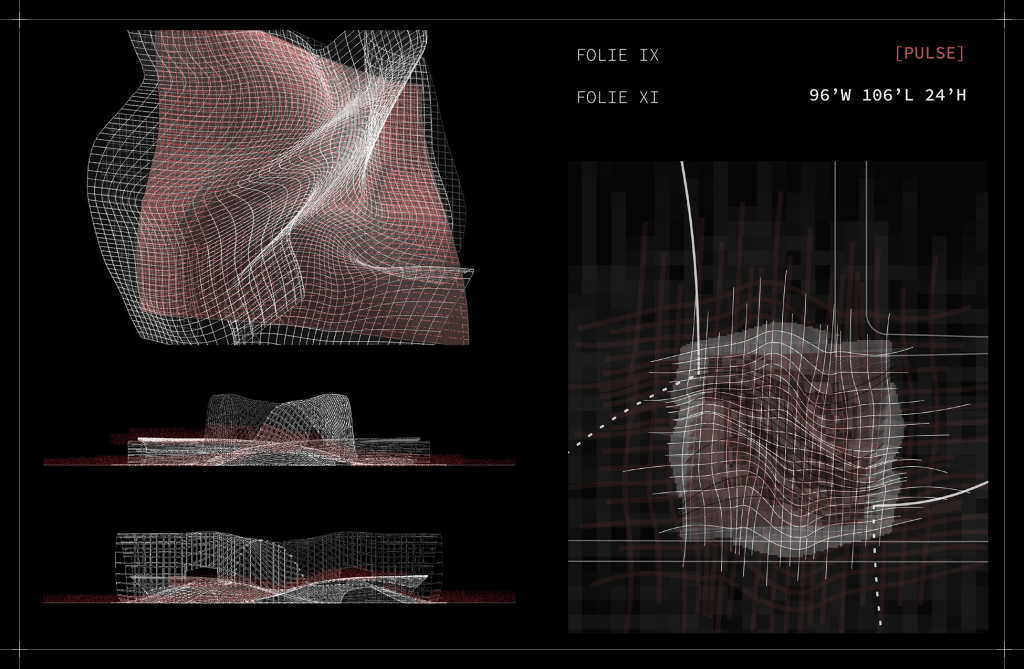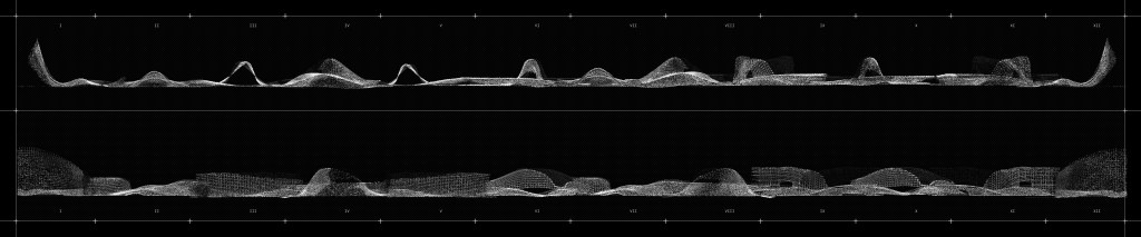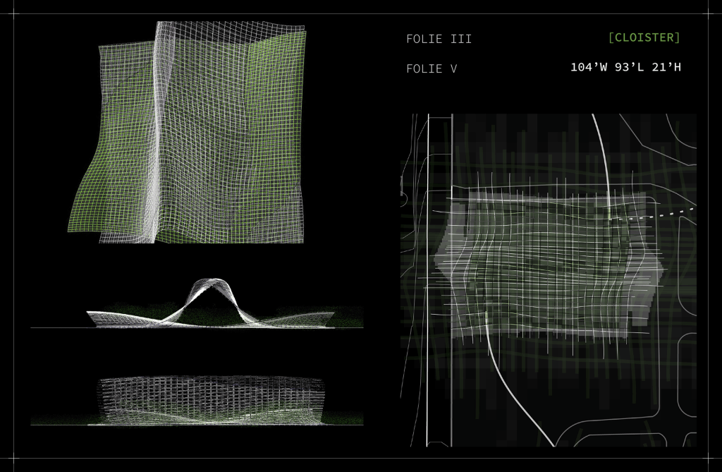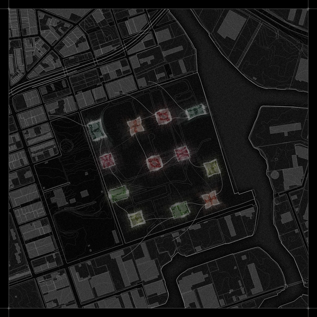Proposed structures will serve as sound oscillation devices, framing a space within which visitors can occupy. I imagine the experience through the site to be a sequence of oscillated sounds, composed of a series of nodes, or architectural follies. The follies serve to signify moments and possibilities of recognizing one’s environment in new lights.